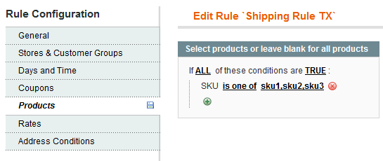 Of course, we wanted it to look for one of the products from the list: sku1, sku2 or sku3. This is how rule should've been configured for this requirement