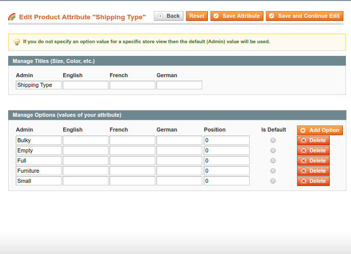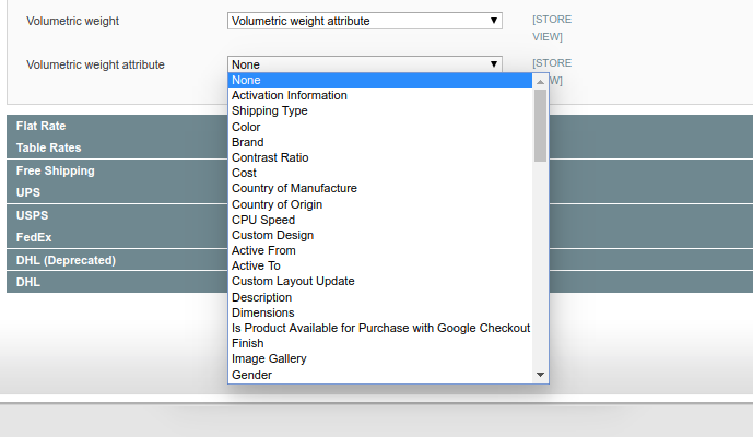 In this method, the volumetric weight is calculated based on the item's volume and shipping factor. Thus, you need to create a volume attribute, specify its values for products and specify a shipping factor.