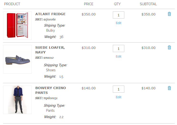 After that, we end up with two Shipping Types = All products in the cart, so their attributes like Price, Quantity and Weight will be summarized. Therefore, the extension will look for the rate matching these conditions: Qty = 2, Price = $450, Weight = 3.7.
