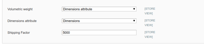 Volume weight - you can calculate a shipping price based on a volumetric weight in 4 ways: Volumetric weight attribute, Volume attribute, Dimensions attribute and Separate dimension attribute.