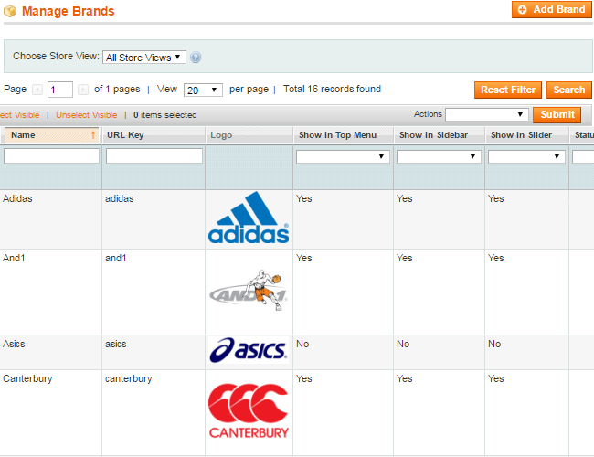 Show Brand Logo - Set the option to 'yes' to display a clickable brand logo on the brands listing page.
