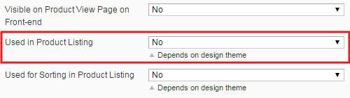 Then log in to admin panel, browse to Catalog → Attributes, go to edit front end properties of the attribute, icons of which you would like to display, and set “Used in Product Listing” setting to ‘Yes‘: