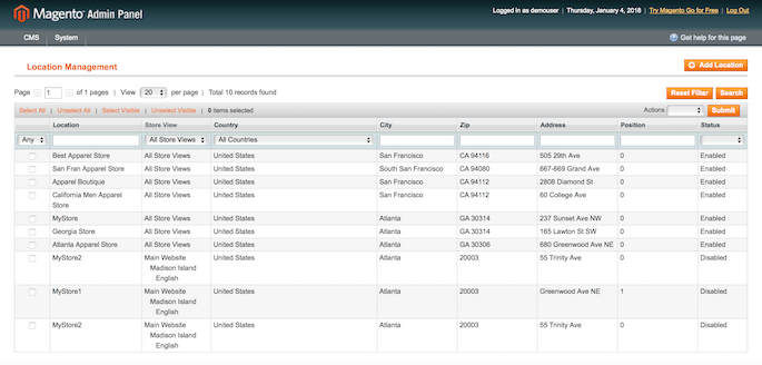 With the extension, you can instantly create or update numerous store locations by gathering all store info and upload it as a .CSV file.