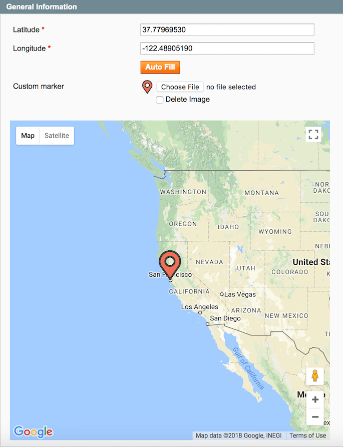 Next, switch to the Location on Map tab and specify the latitude and longitude manually or hit the Auto fill button to detect coordinates based on the address specified above.