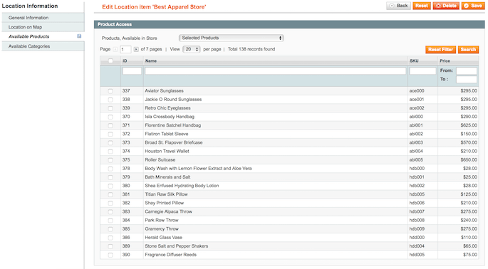Then, switch to the Available Products tab. In case some offline stores sell only specific products you can assign these products to store location.