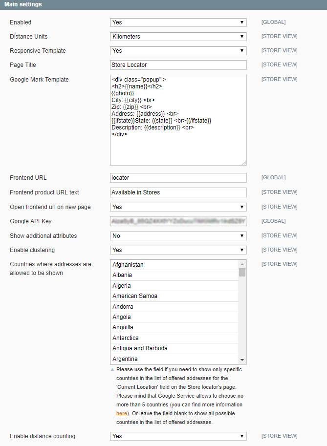 Enable distance counting - set to Yes to show the distance between stores and customer’s location.