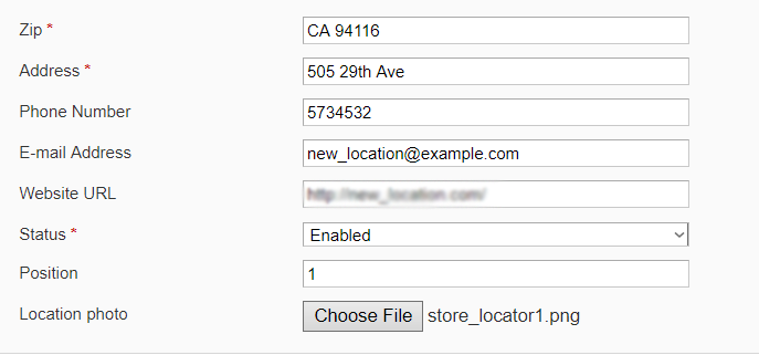 Frontend URL — specify the part of the URL for the store locator page or use the default one;