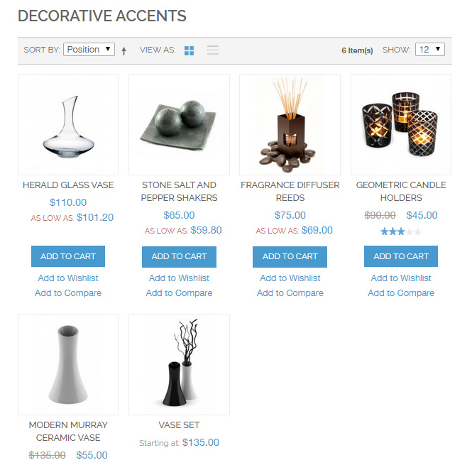 Products displayed on the category page after bulk tier prices update.