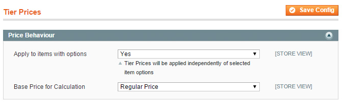 Apply to items with options. Note that Tier Prices will be applied independently of selected item options. Choose which price should be the base for tier price calculation. There are 2 options - regular or final prices.