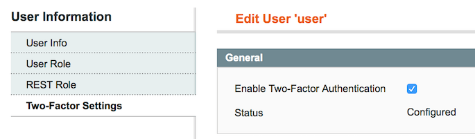 Enable Two-Factor Authentication — use this option to enable or disable two-factor authentication;