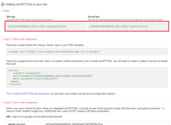 To get the Site key and Secret key click the link.