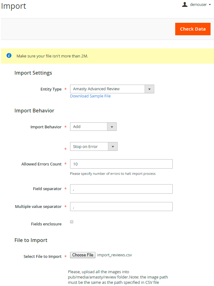 With the extension it is possible to import or export reviews via a CSV file.