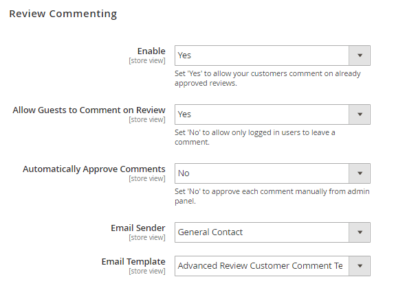Allow Guests to Comment on Review - If No, only logged-in users will be able to leave a comment.