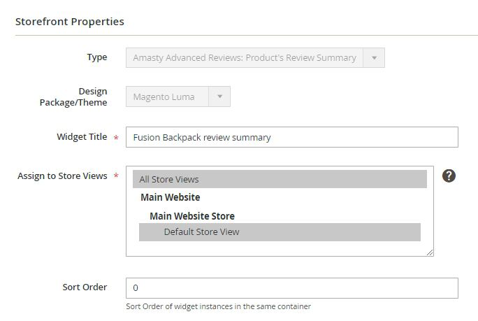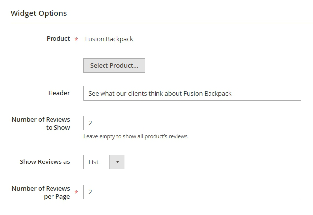 Header - enter the title of the Review Summary widget, which will be visible for customers on the frontend.