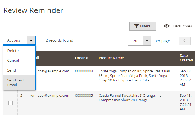 Send Reminders - the option allows admin to limit the review reminders' email quantity. Once per product - if a customer has bought the same product several times, he will get only one review request Once per customer - each customer will receive a review request only once: after the first purchase. Once per order - customers will receive review reminders after each purchase. Admin is able to send Reminder Emails manually from the Review Reminder grid without limit.