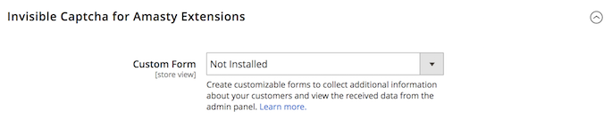 In this section, you can enable or disable the Google Invisible reCaptcha for supported Amasty modules. Choose Yes to enable the Captcha for the extension or No to disable it. Please note that you will get the Not Installed status when you do not have the appropriate extension.