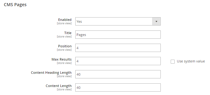 Enabled - set to Yes to enable search by blog pages and to display a blog section in the search window popup to help store visitors find the required content throughout your corporate blog.