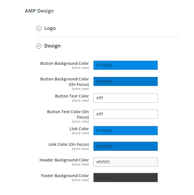 With the AMP extension, you can easily adjust the design of the mobile pages: modify colors for text, links, buttons, header, and footer to make your store look match your branding.