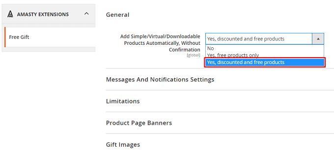 Auto Add Free Items Based on Cart Amount - specify the cart amount type, basing on which a free gift will be automatically added. You may choose Subtotal Before Discounts or Subtotal After Discount.