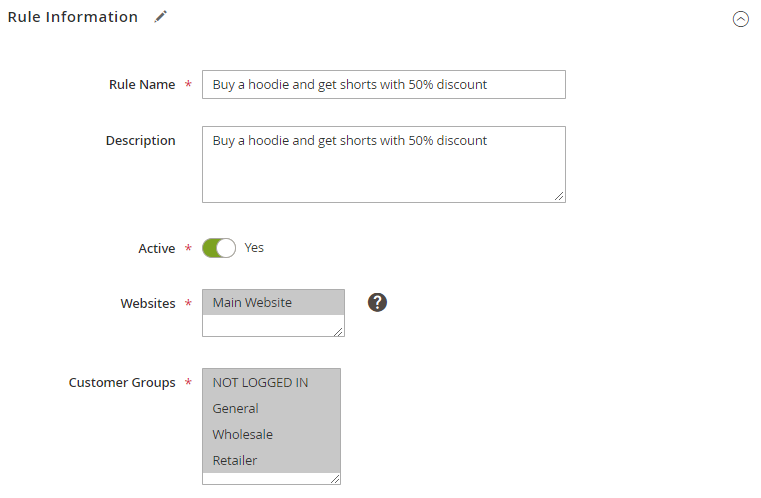 Rule Name - the title of your promotion will be generated automatically.
