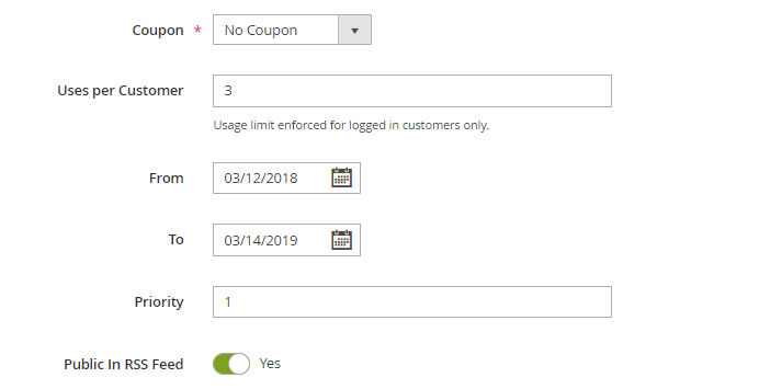 Public In RSS Feed - enable this option to notify your subscribers about special promotions.