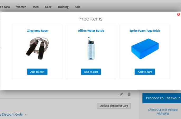 See an example of how different products might look on the Free Gift popup in the shopping cart.