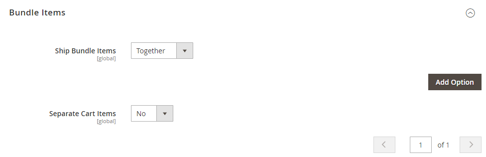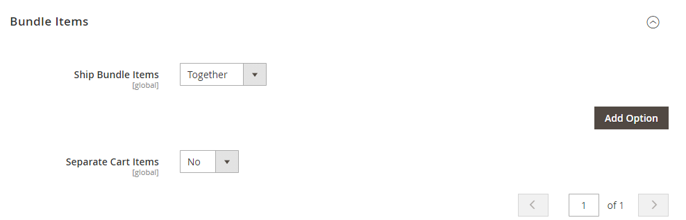 Then scroll down to the ‘Bundle Items’ section and press ‘Add Option’ button: