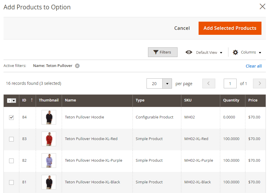 After that please press ‘Add Products to Option’ button. Add Products to Option pop-up opens.