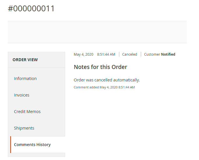 If an order was canceled automatically, you will the the appropriate comment. In addition to this, check whether a customer has been notified.