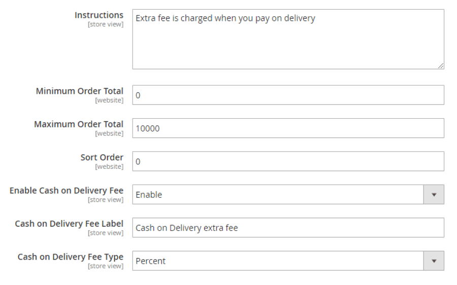 Cash on Delivery Fee Type - set extra fees for using Cash On Delivery payment method as a fixed amount or as a percentage.