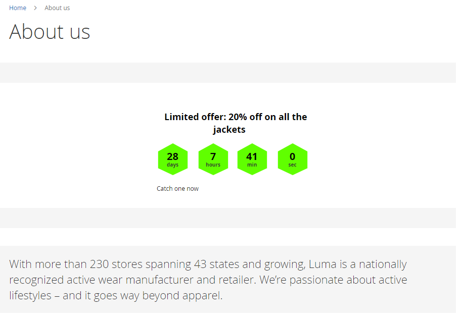 Draw customers’ attention to your special offers by adding a timer to any CMS page.