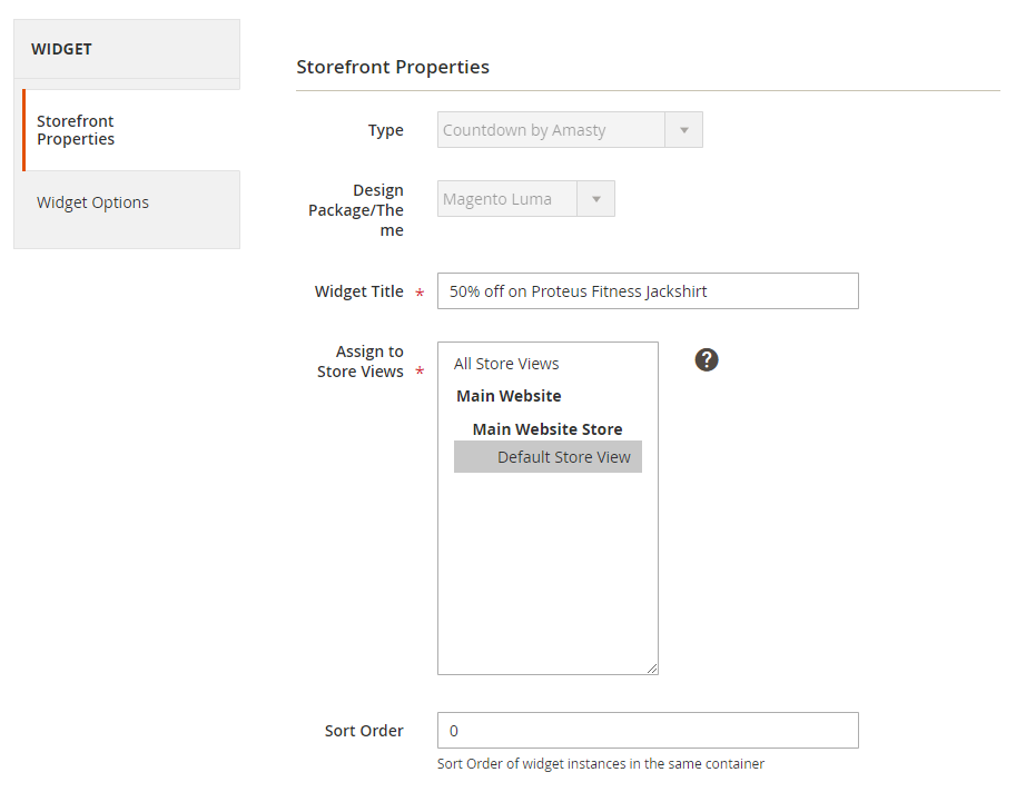 Widget Title - specify widget’s title that will be displayed on the backend so that you can easily find it in the grid.