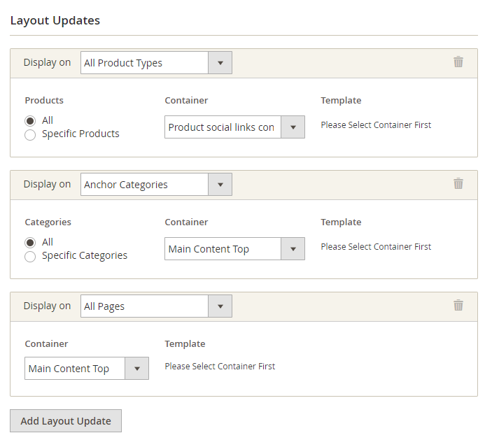 In the Layout Updates block you can attach timers to any pages of your webstore.