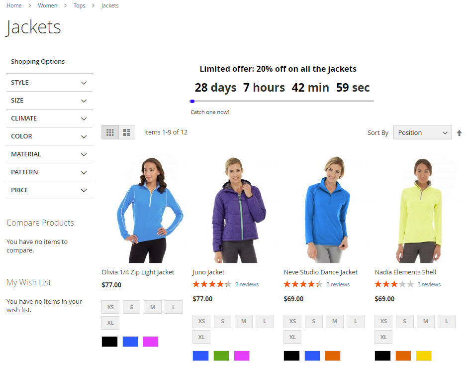 Increase conversion with the Countdown Timer extension for Magento 2 by visualizing your limited offers and motivate customers to make a decision on a purchase faster.
