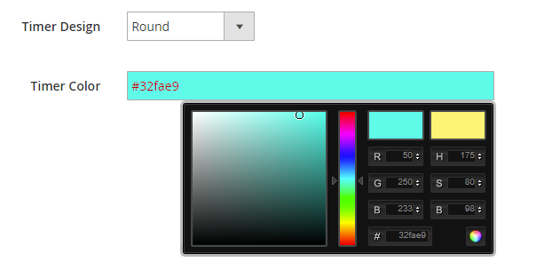 Timer Color - set the necessary color to fit your website design using a handy color picker tool.