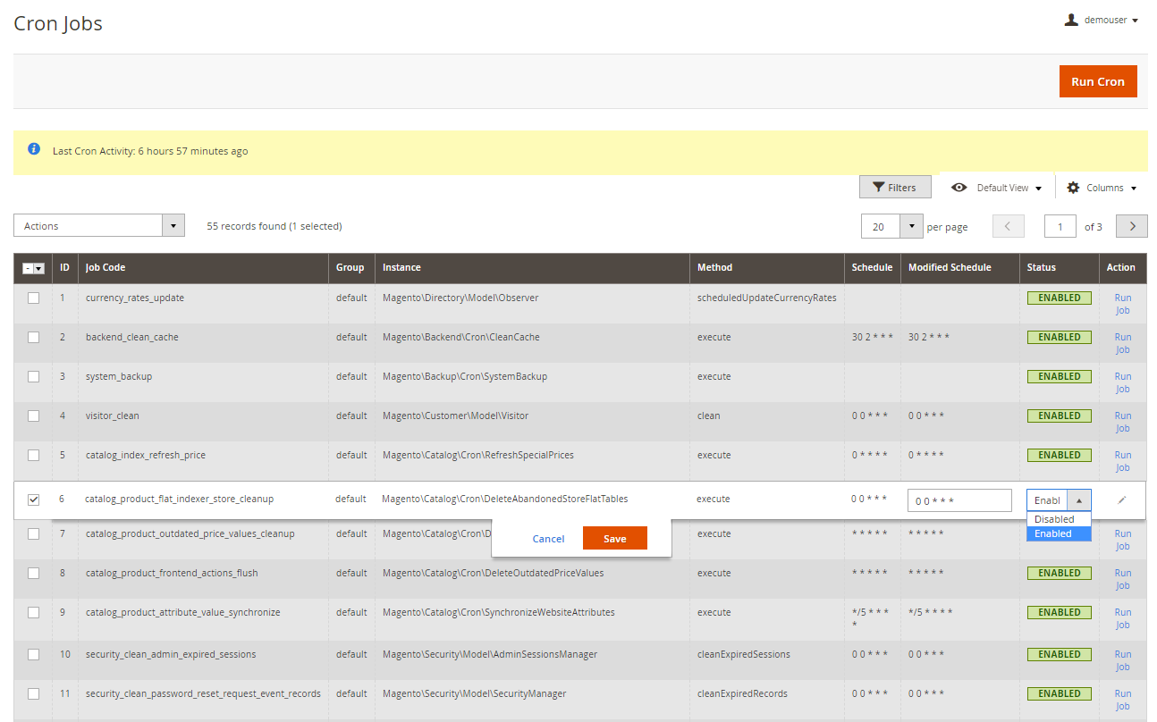 To monitor and manage the overall store cron work process, go to System → Cron Jobs List.