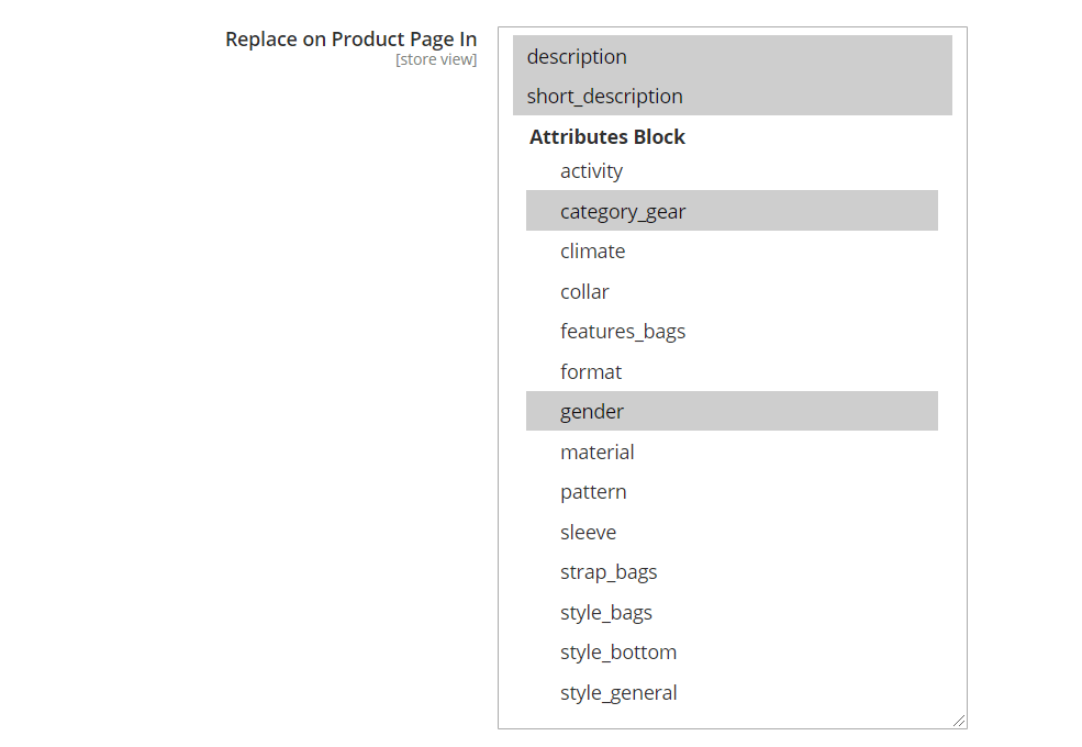 Replace on Product Page In - Specify the sections on the product page, where the plugin should replace the keywords with links. Specify location as in full description, in short description, or in the Attributes Block (choose one or several attributes).
