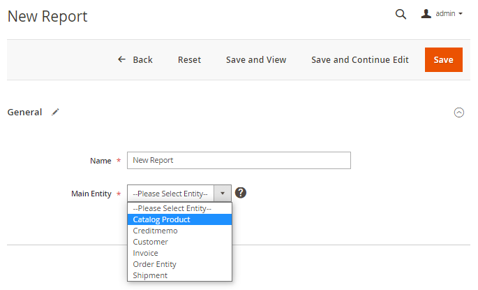 Before choosing the main entity, think about the main objectives of your report. For example, if you need some product breakdown and their performance by specific criteria - you should choose the Catalog Product main entity thus building your report from the product. Or if you need to analyze particular sales aspects - you should choose the Order Entity thus building your report from the order.