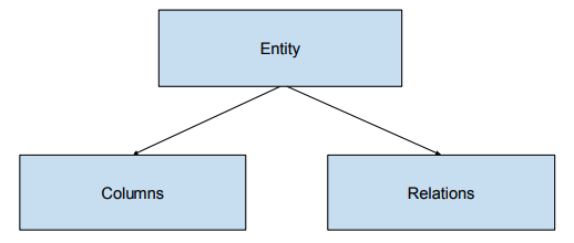 The file should describe the entity (name, title, main table), the columns of the entity (name, title, data type, etc.), and its relations.