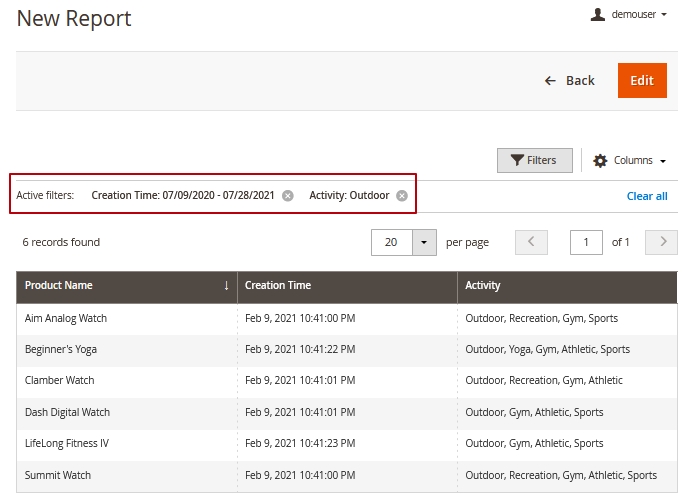 By the way, you can delete applied filters or add new ones on the report view page, but if you reopen the same report, it will be displayed again the way it was saved on the edit report page.