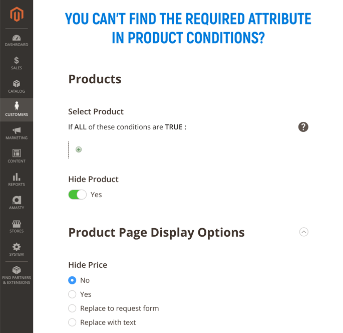 Hide Price — enable this option to hide price from a certain group of customers. Also, you can: