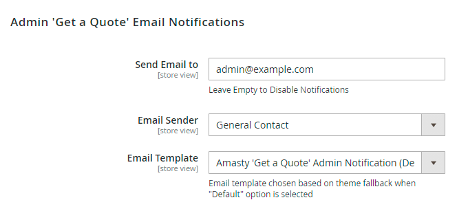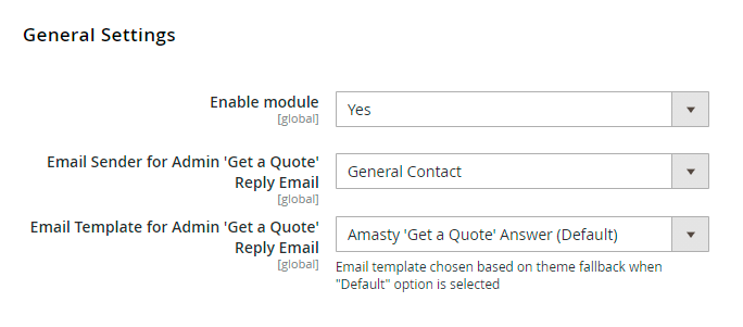 Email Sender for Admin 'Get a Quote' Reply Email — specify the email sender for admin's replies;