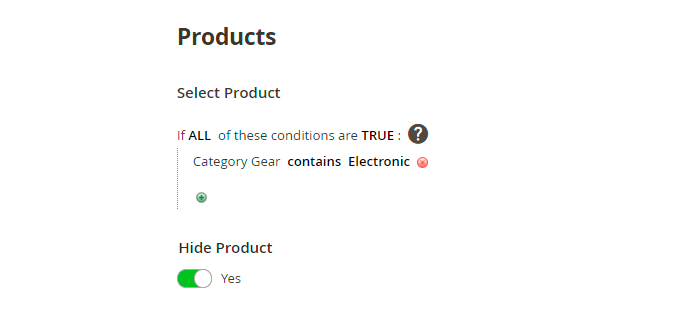 Hide Product - set to Yes to hide the selected product(s).