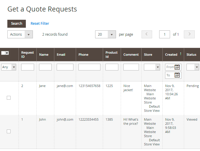 To manage customer's quotes, please go to Customers → Get a Quote Requests. Here you can see all incoming requests from your customers. Select a request to see the details.