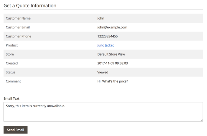 Fill in the Email Text field and hit the Send Email button to send a reply to the request. Hit the Delete button to remove the request.