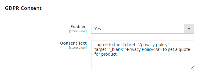 Enabled — choose Yes to enable the GDPR consent request;