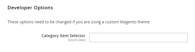 Category Item Selector — use this option to set the category item selector when a custom Magento theme is activated.