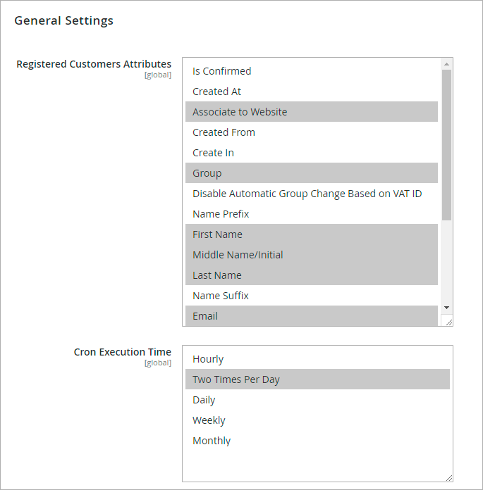 Cron Execution Time - The module lets you automatically update segmentation lists according to a specific schedule. Specify the time interval for cron execution to update segments as often as you need.