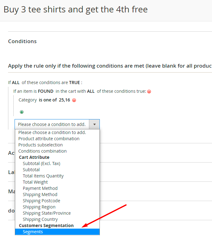 Here you can select the required segments created with the Customer Segmentation extension.