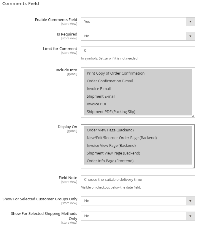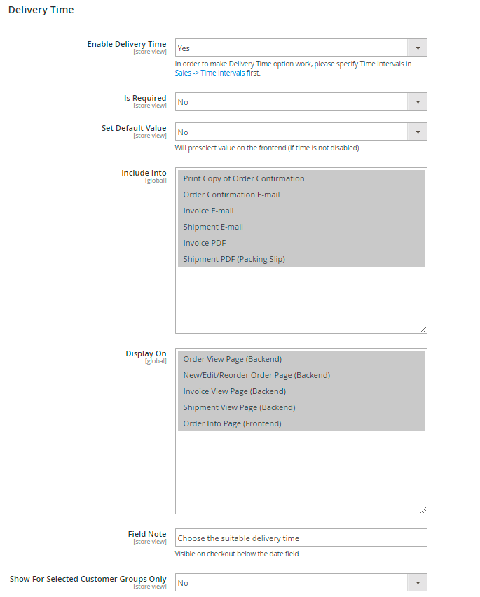 Delivery Time Field Is Required - set to Yes to make this field mandatory.
